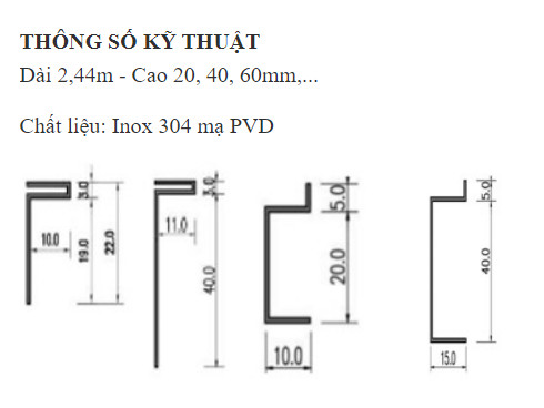 Sản phẩm được gia công chấn dập từ inox tấm, với độ dày inox 0,6 đến 2mm. Chiều dài sản phẩm 2438-3000mm, nên về chiều cao của sản phẩm đa dạng theo nhu cầu thiết kế.
