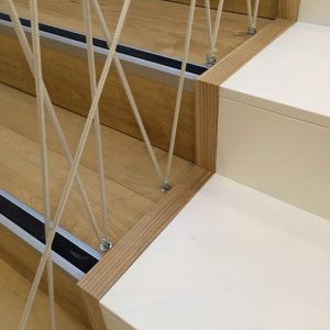 – Cách thi công, lắp đặt: Bằng cách sử dụng keo chuyên dụng dùng trong xây dựng để liên kết với các vật liệu gạch, đá, gỗ, kính, Hoặc kết hợp với vít để cố định nẹp xuống cầu thang