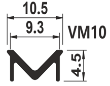 – Dưới đây là mặt cắt của nẹp trang trí, nẹp chữ M mã VM10